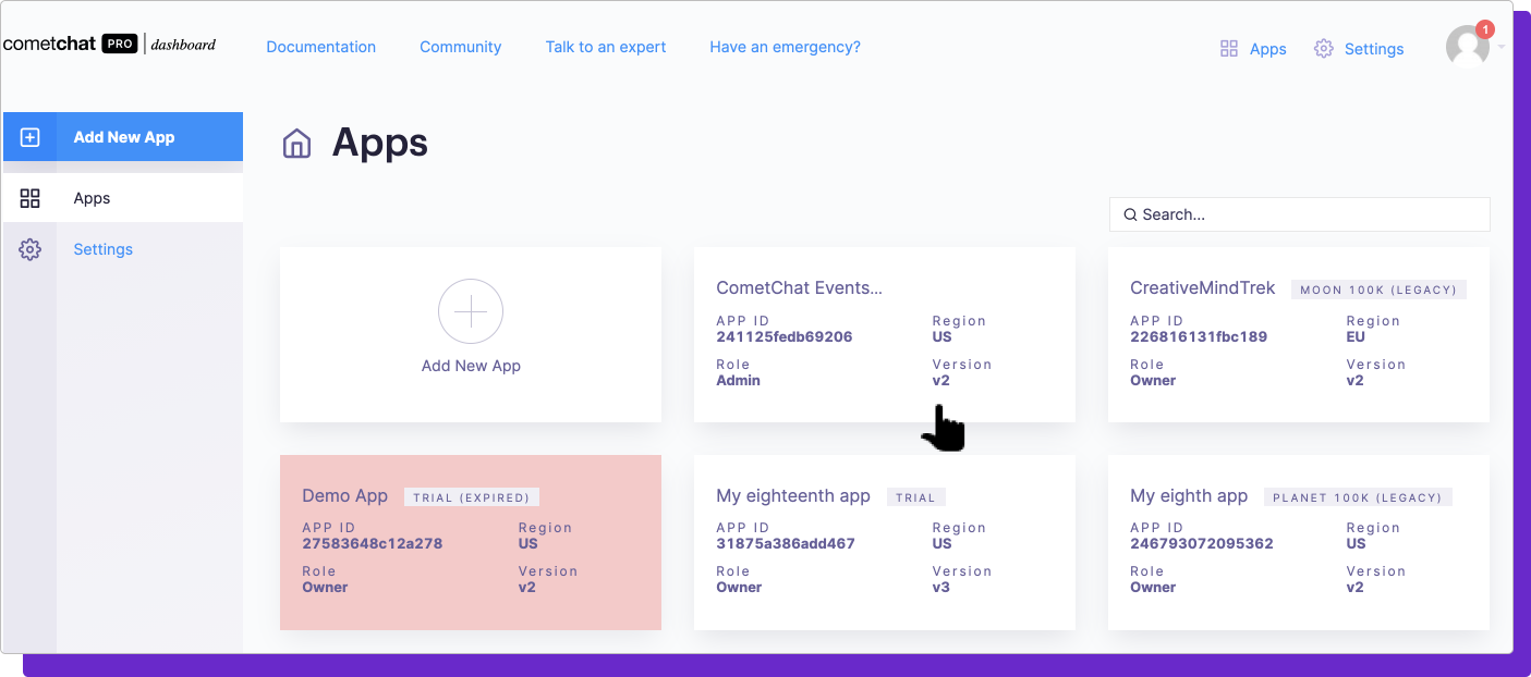 - Open CometChat Dashboard