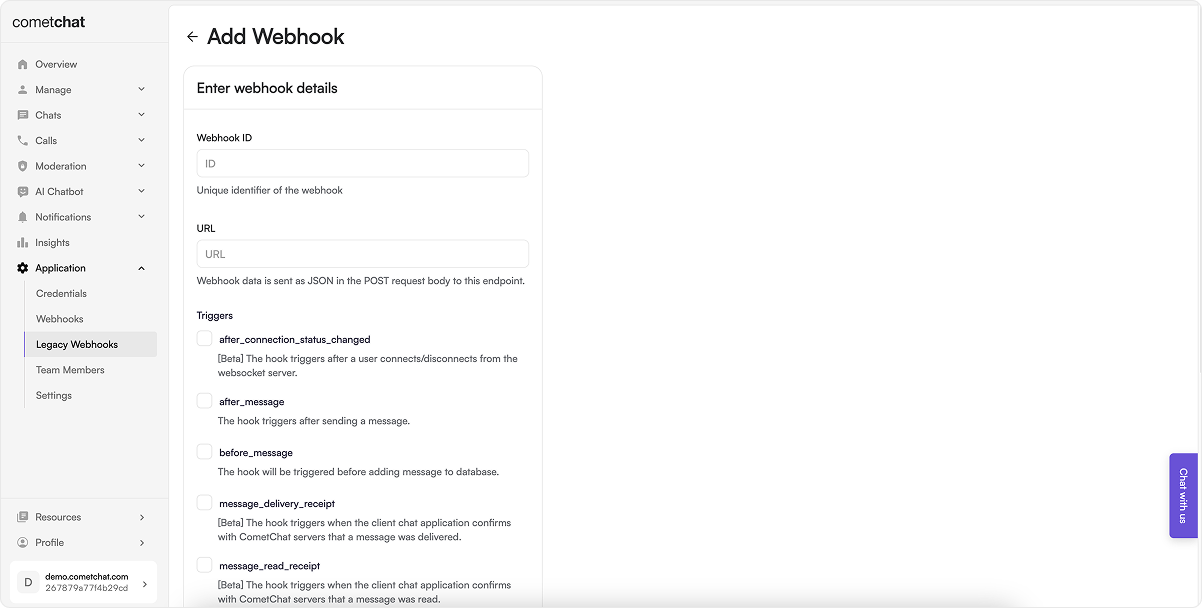 To manage webhooks using the CometChat dashboard: