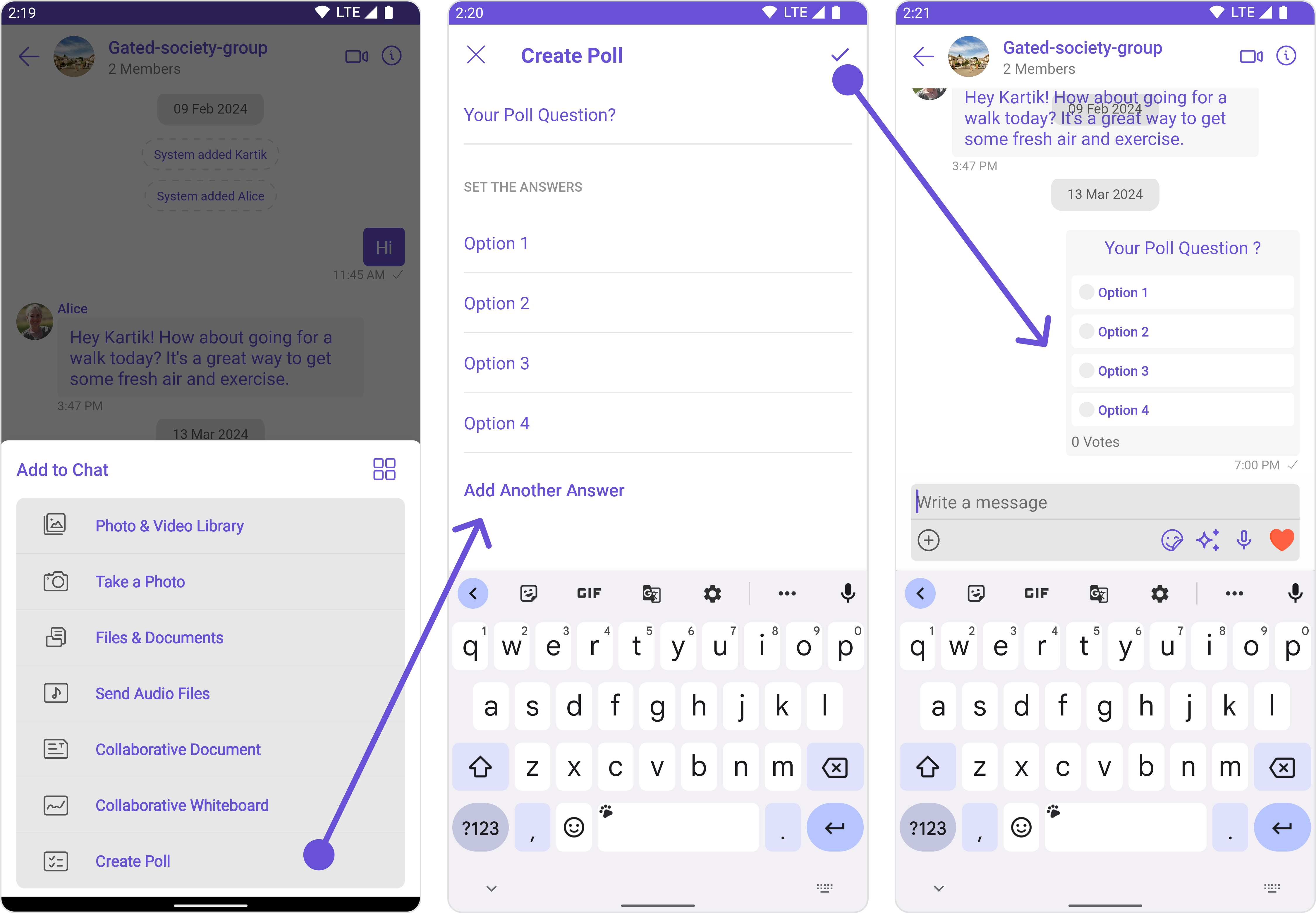 The Polls extension enhances group discussions by allowing users to create polls. Users can ask questions with a predefined list of answers, enabling a quick, organized way to gather group opinions. For a comprehensive understanding and guide on implementing and using the Polls Extension, refer to our specific guide on the Polls Extension. Once you have successfully activated the Polls Extension from your CometChat Dashboard, the feature will automatically be incorporated into the Action Sheet of the Message Composer component of UI Kits.