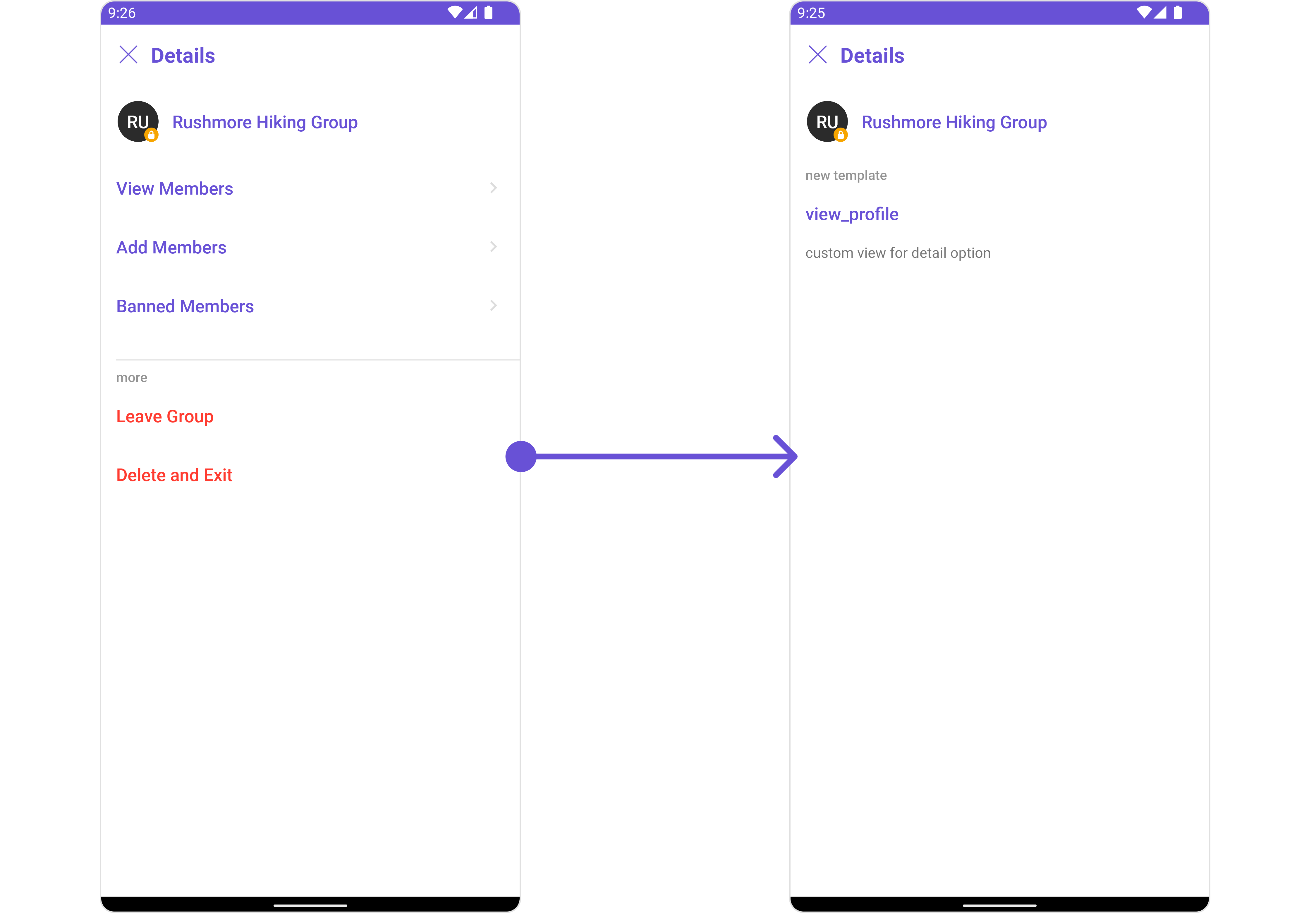 viewFunction3<Context, User, Group, View>to set a custom view for particular option