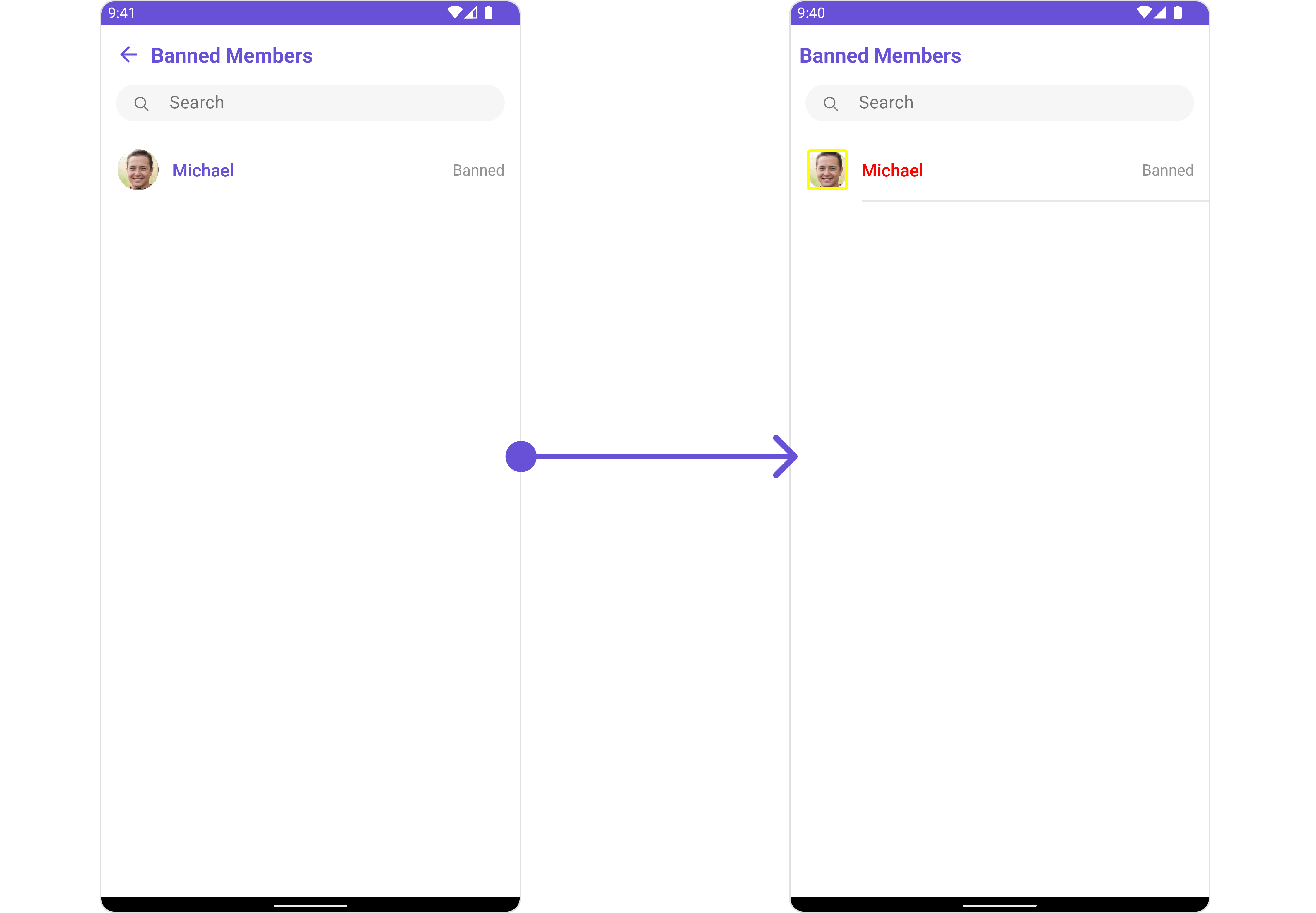 All exposed properties of BannedMembersConfiguration can be found under Banned Members. Properties marked with the 🛑 symbol are not accessible within the Configuration Object. Example Let’s say you want to change the style of the Banned Members subcomponent and, in addition, you only want to show the back button. You can modify the style using the ListItemStyle property and AvatarStyle property
