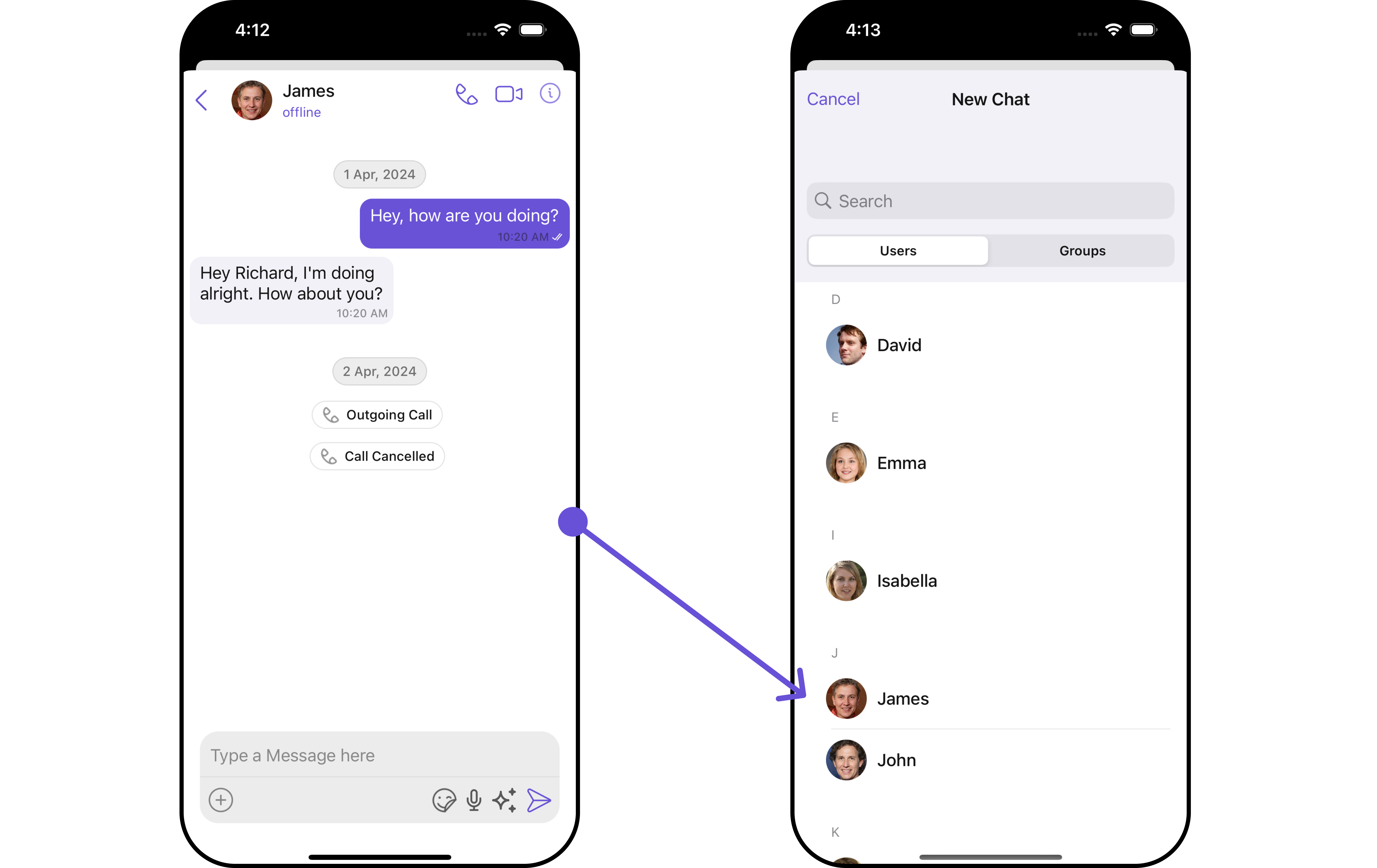 Since CometChatConversationsWithMessages is a view controller, it can be launched either by a button click or through any event’s trigger. It inherits all the customizable properties and methods of CometChatConversations. View Controller: To use ConversationsWithMessages in your view controller, use the following code snippet.