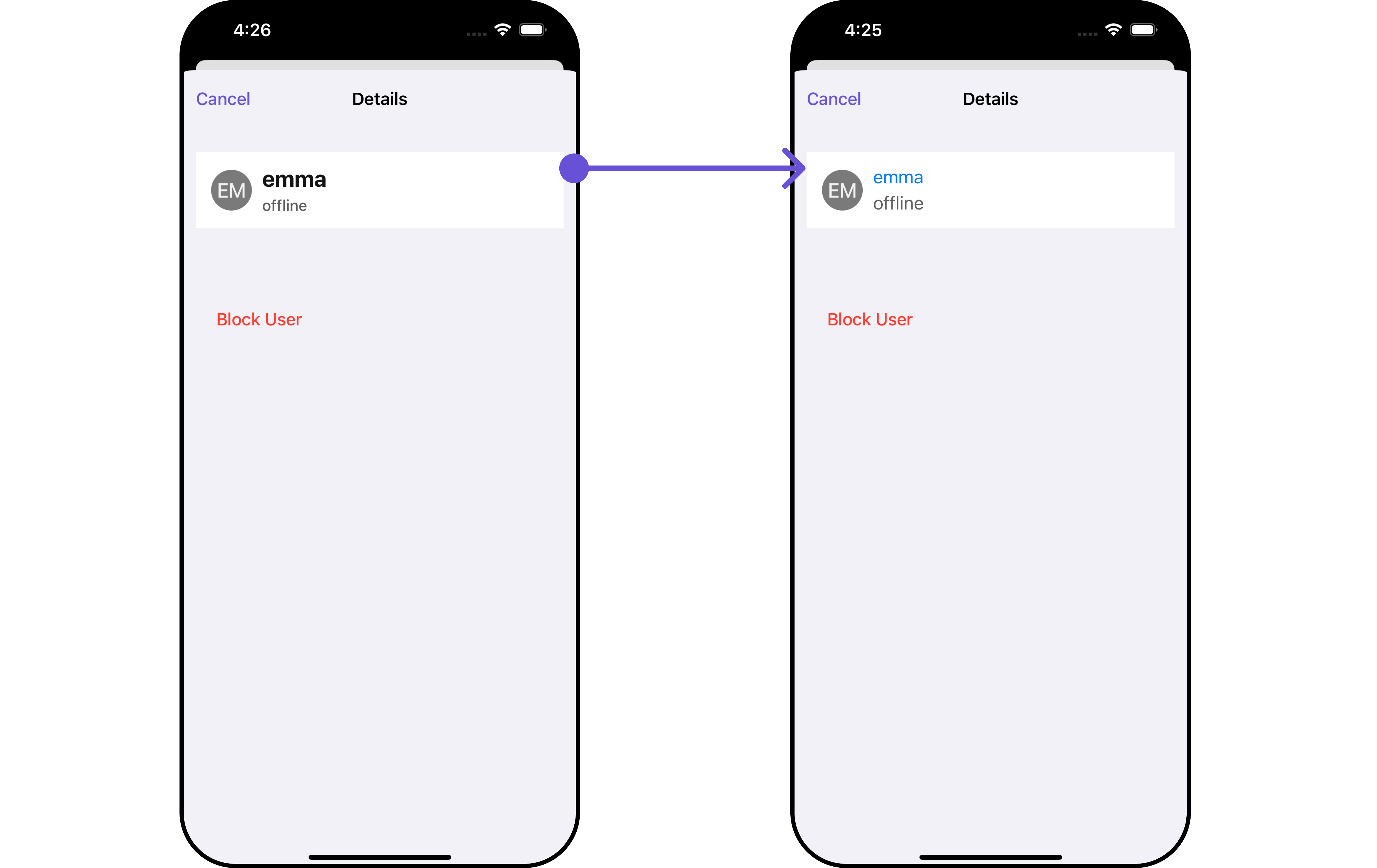 AsCometChatDetails functions as a view controller, it can be directly launched through a button click or any user-initiated action. Additionally, it can be seamlessly integrated into a tab view controller. CometChatDetails offers a range of parameters and methods for customizing its user interface.